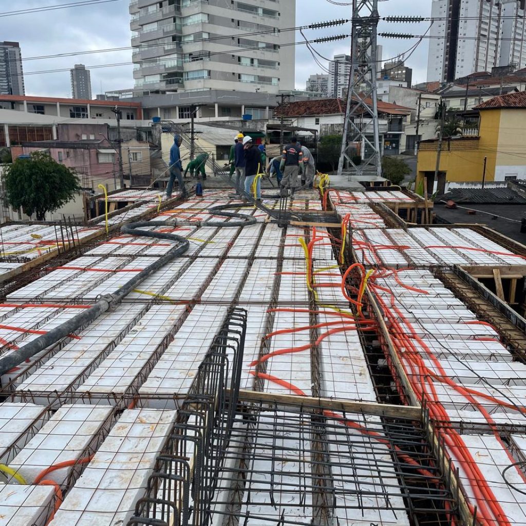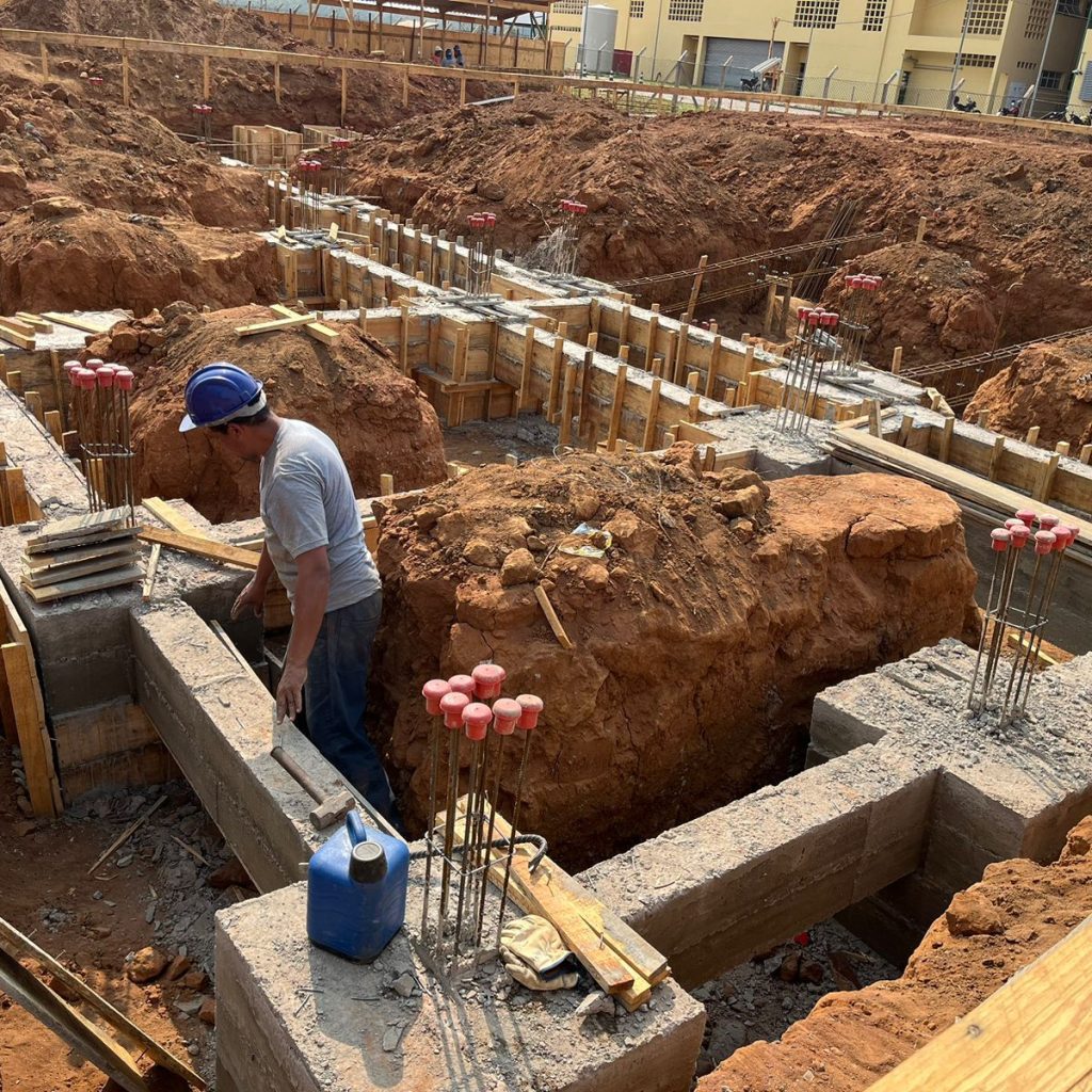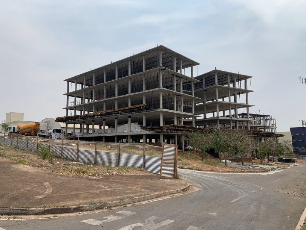Construção de 12.038 m² de obra, divididos em duas torres com pavimentos tipos de 722,40 m² no bloco didático e 1.516,11 m² no bloco de